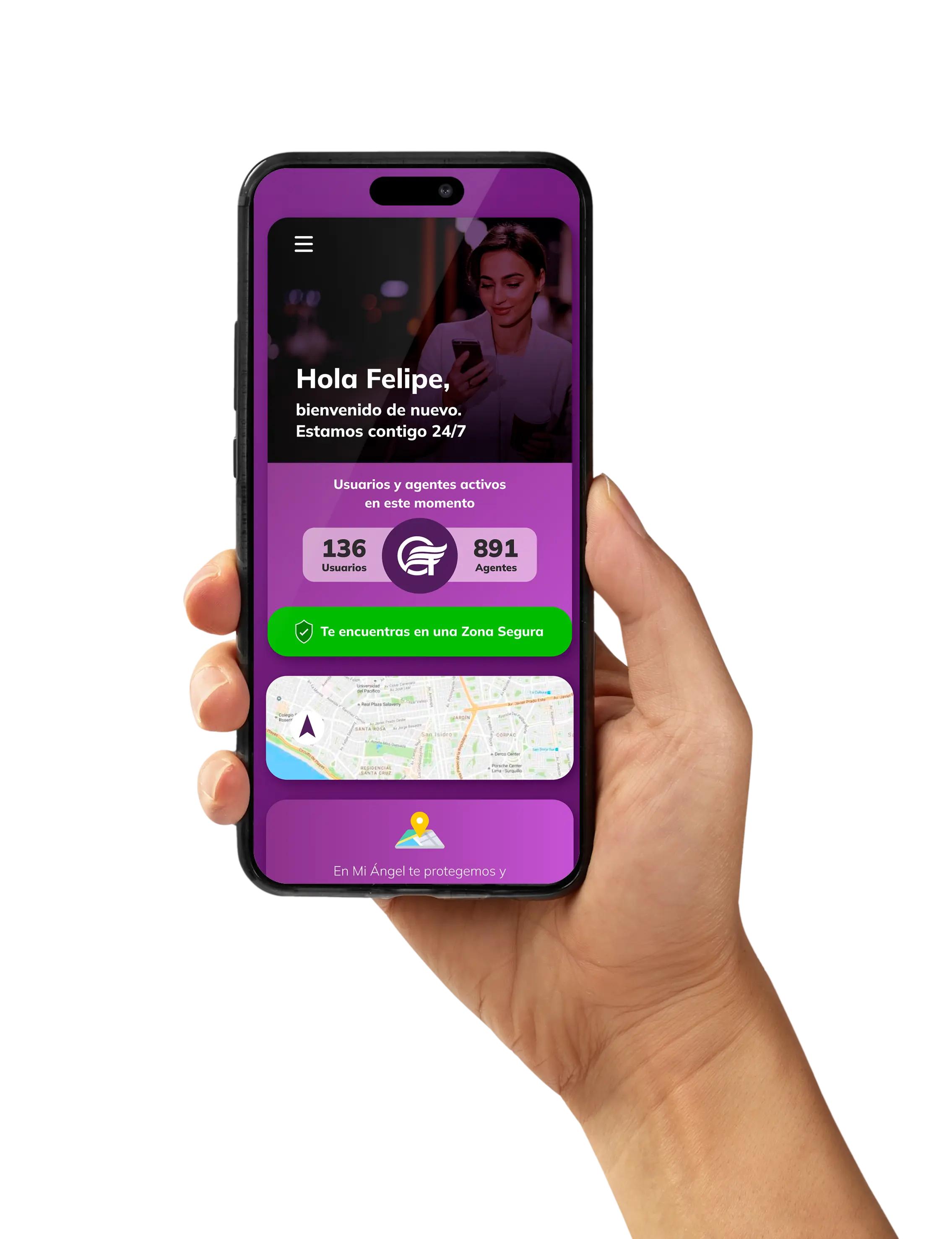 Estar protegida y moverte con libertad es tu derecho. Yo te cuido, tu me cuidas, MI ÁNGEL nos integra y nos cuida. Ahora la seguridad está en tus manos. En Colombia, 9 de cada 10 mujeres se han sentido acosadas y con miedo de salir solas a la calle. Con MI ÁNGEL puedes estar tranquila porque todos asumimos nuestra responsabilidad en tu seguridad #TodosxTodas